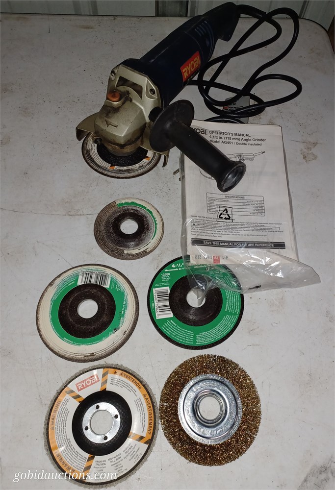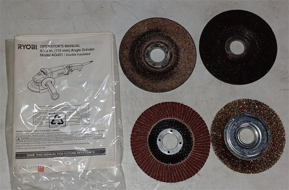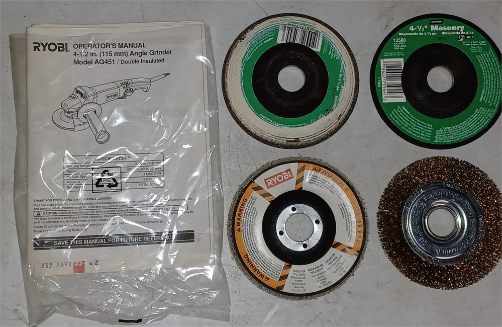 Ryobi angle grinder with extra disc's in a case